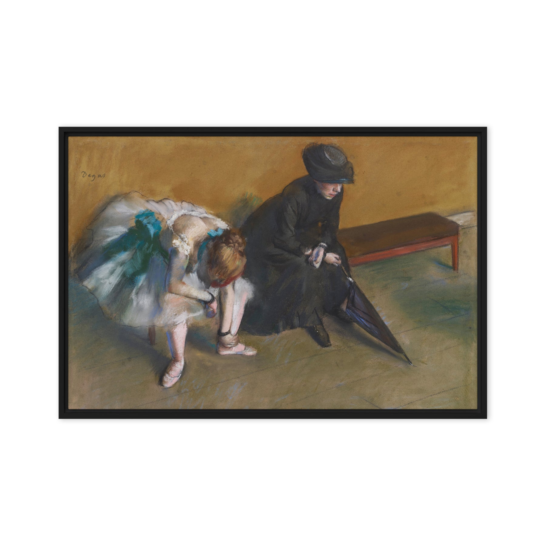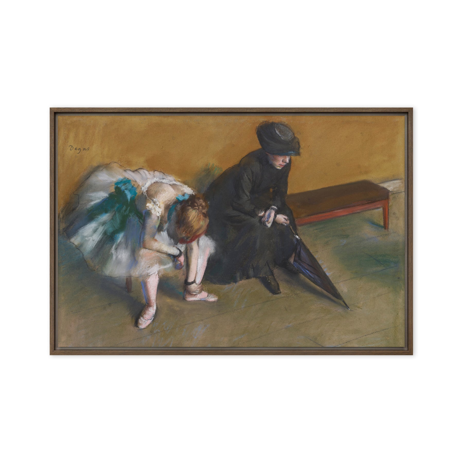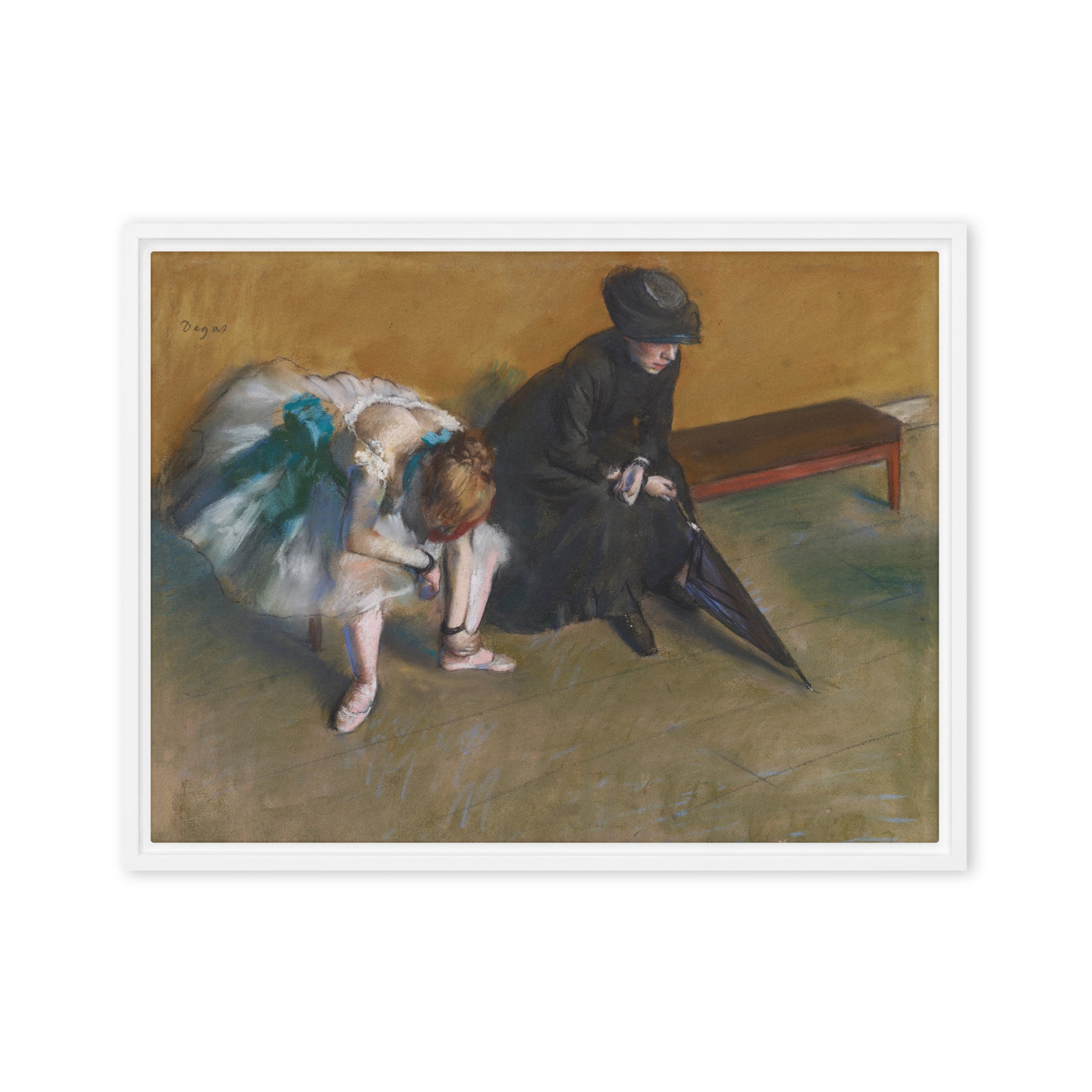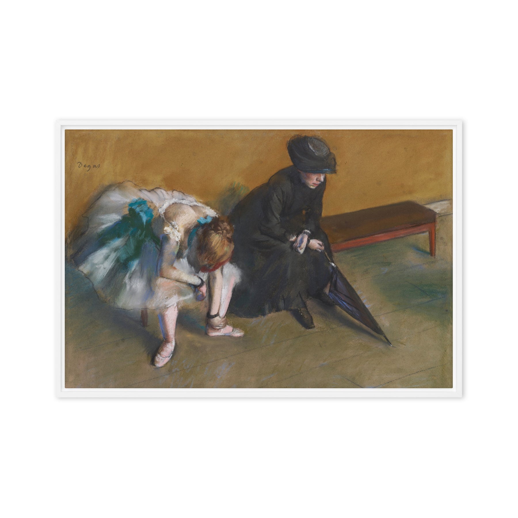 Spice up your empty walls with this striking framed canvas! This high-quality, framed canvas - Edgar Degas, Waiting made of pine wood comes with rubber bumpers on the back corners and a wall hanger that allows for easy hanging of the artwork. Additionally, the frame gives the canvas a cool floating effect!