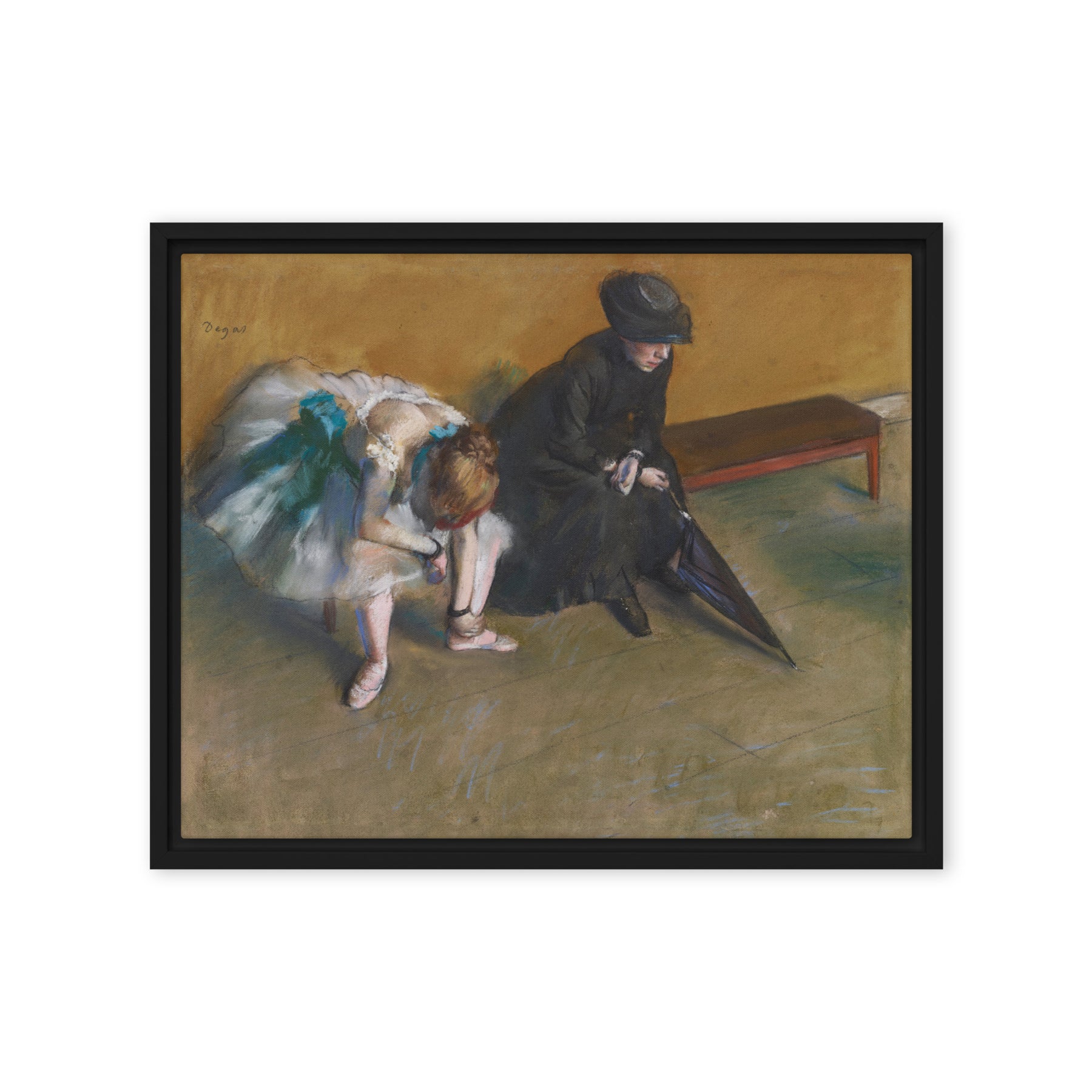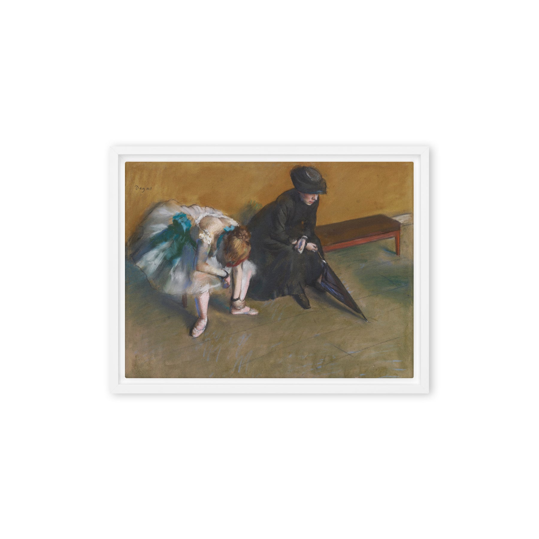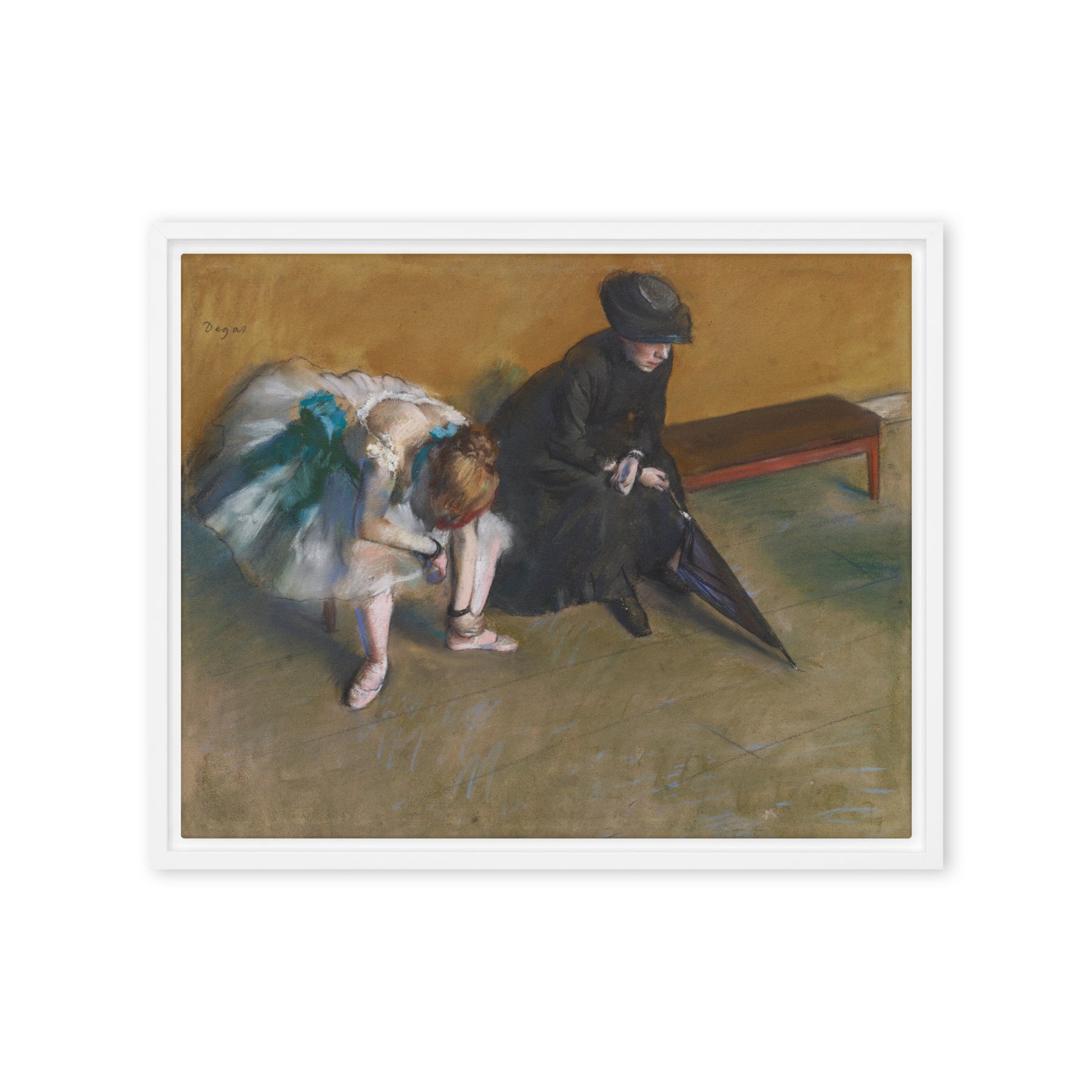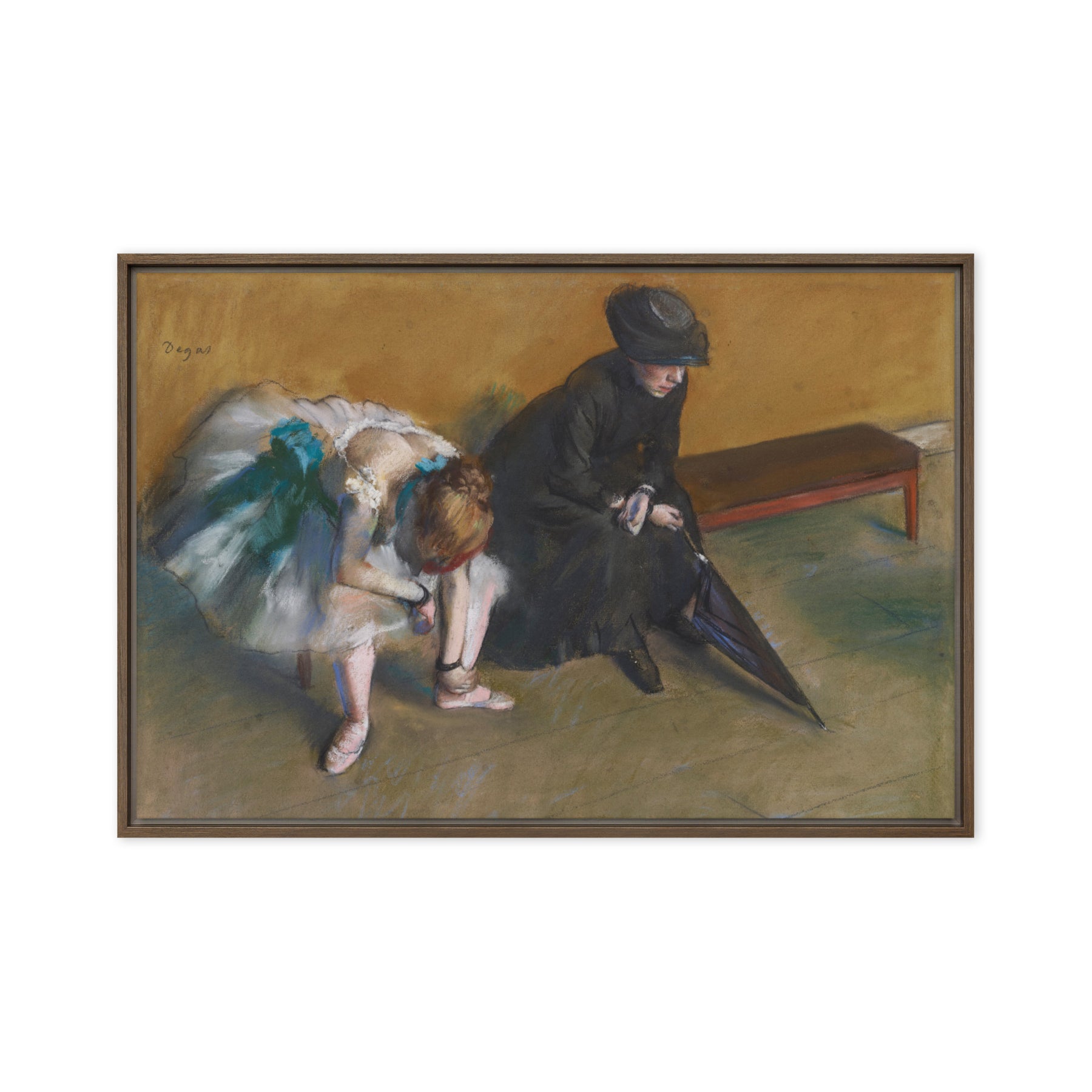 Spice up your empty walls with this striking framed canvas! This high-quality, framed canvas - Edgar Degas, Waiting made of pine wood comes with rubber bumpers on the back corners and a wall hanger that allows for easy hanging of the artwork. Additionally, the frame gives the canvas a cool floating effect!