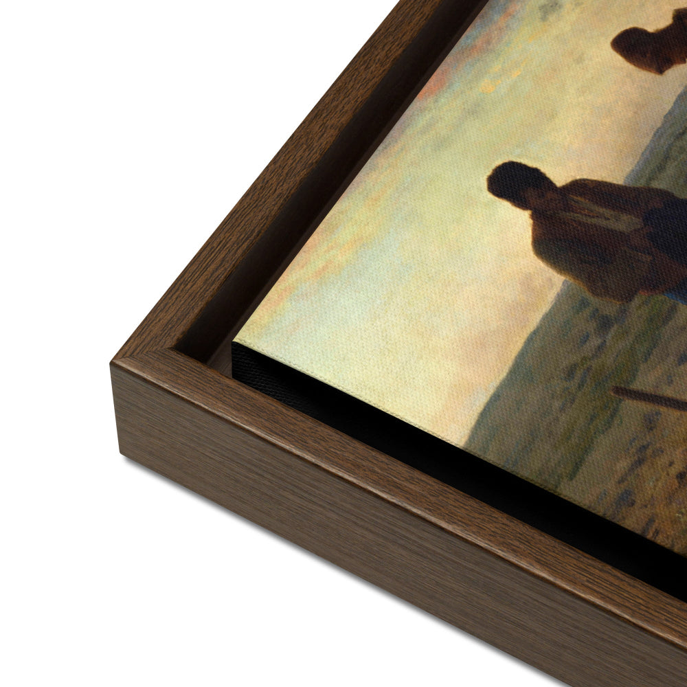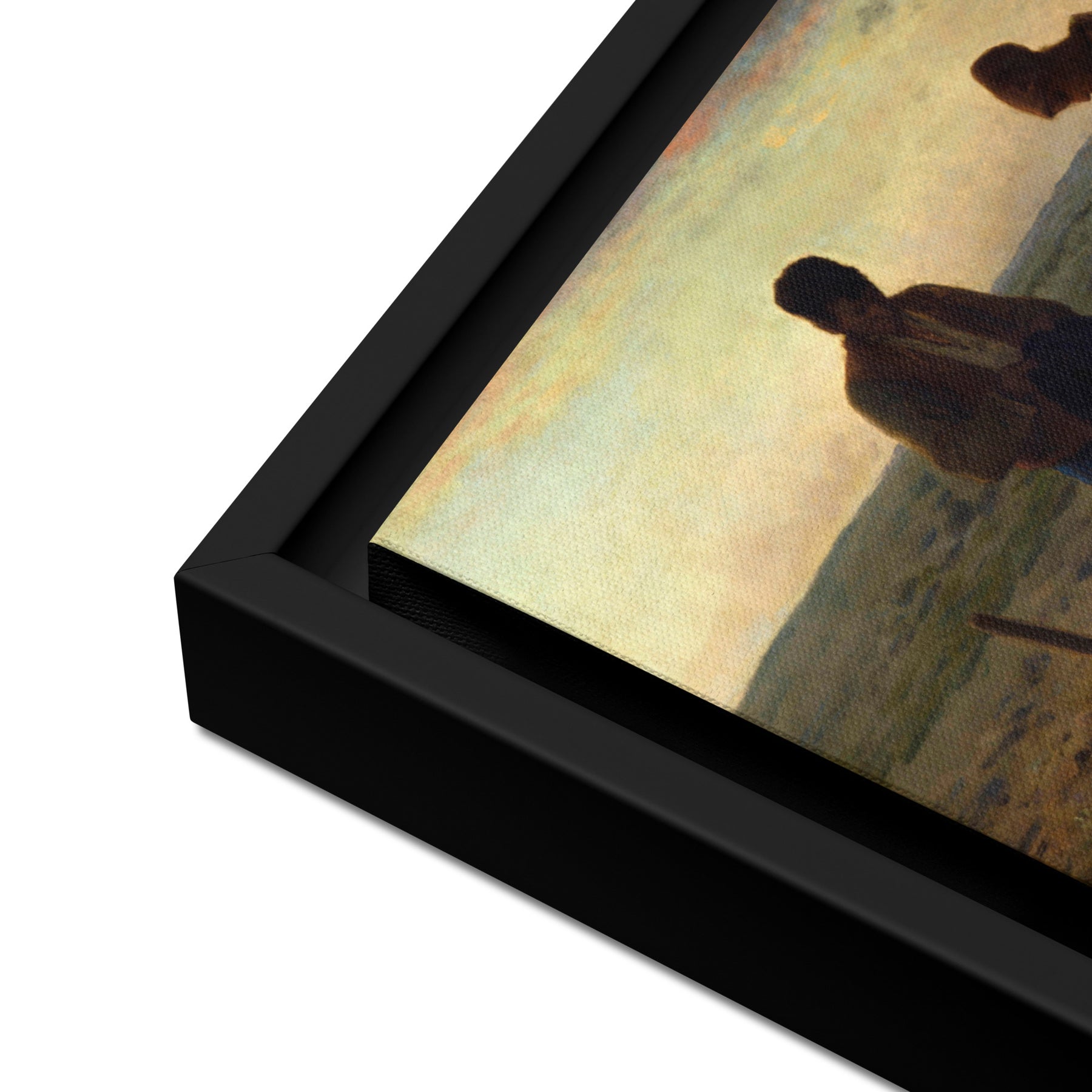 Liven up your empty walls with this eye-catching framed canvas! This high-quality framed canvas - The Angelus Bell by Jean-François Millet made of pine wood comes with rubber bumpers on the back corners and a wall hanger that allows for easy hanging of the artwork. Additionally, the frame gives the canvas a cool floating effect!