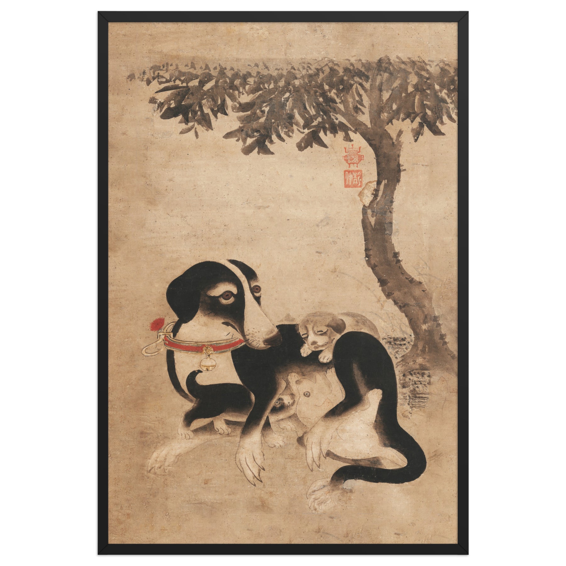 poster-Hundemutter-mit-Welpen-framed-poster-_cm_-black-61x91-cm-front