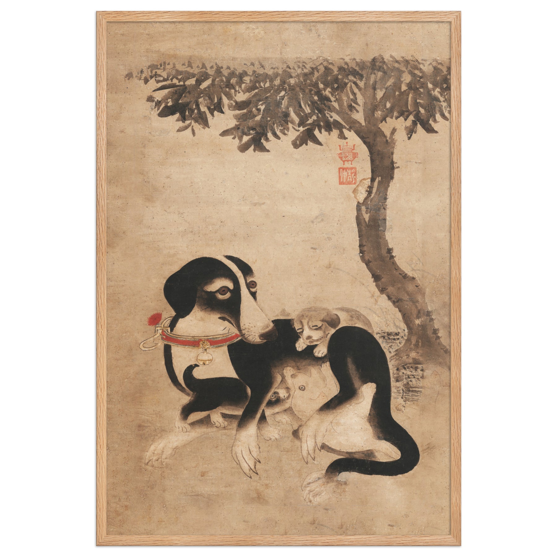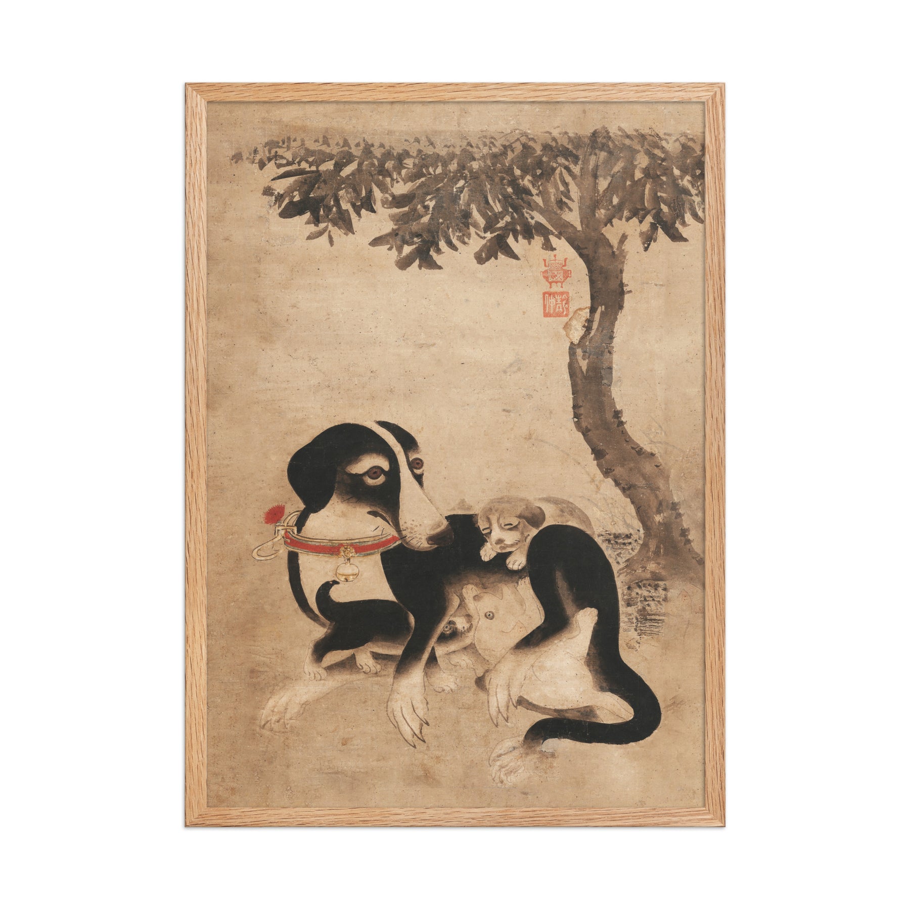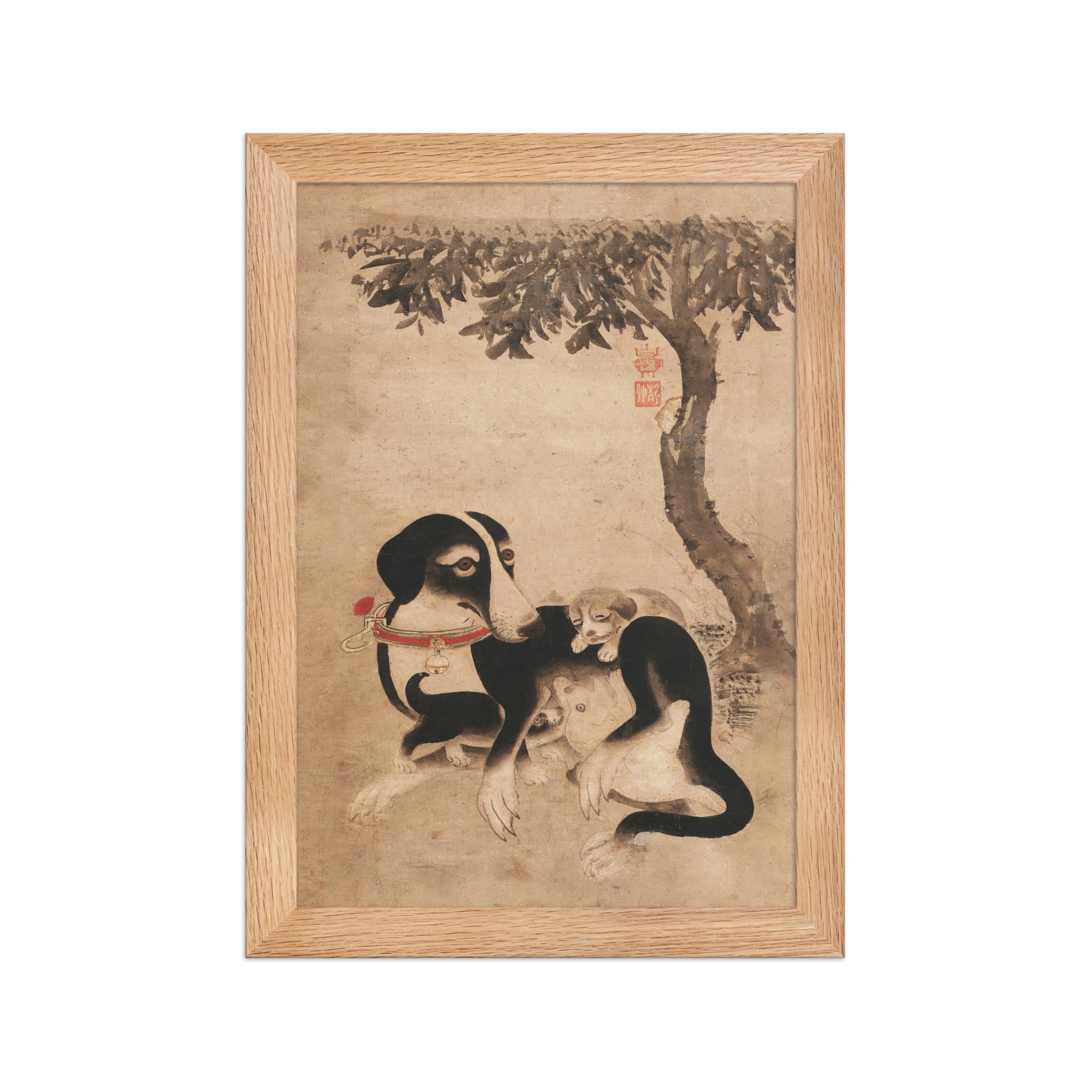 poster-Hundemutter-mit-Welpen-framed-poster-_cm_-oak-61x91-cm
