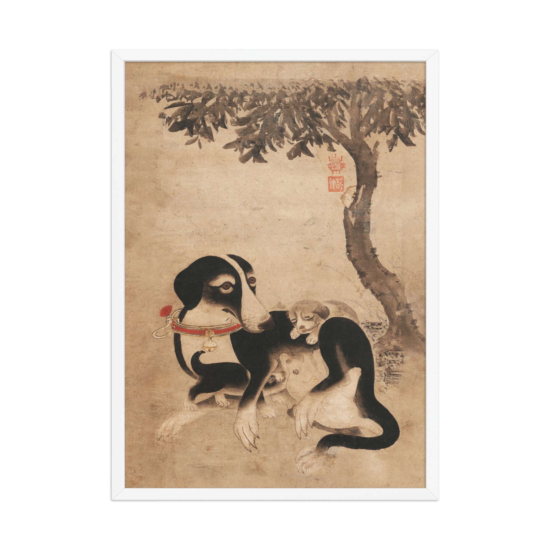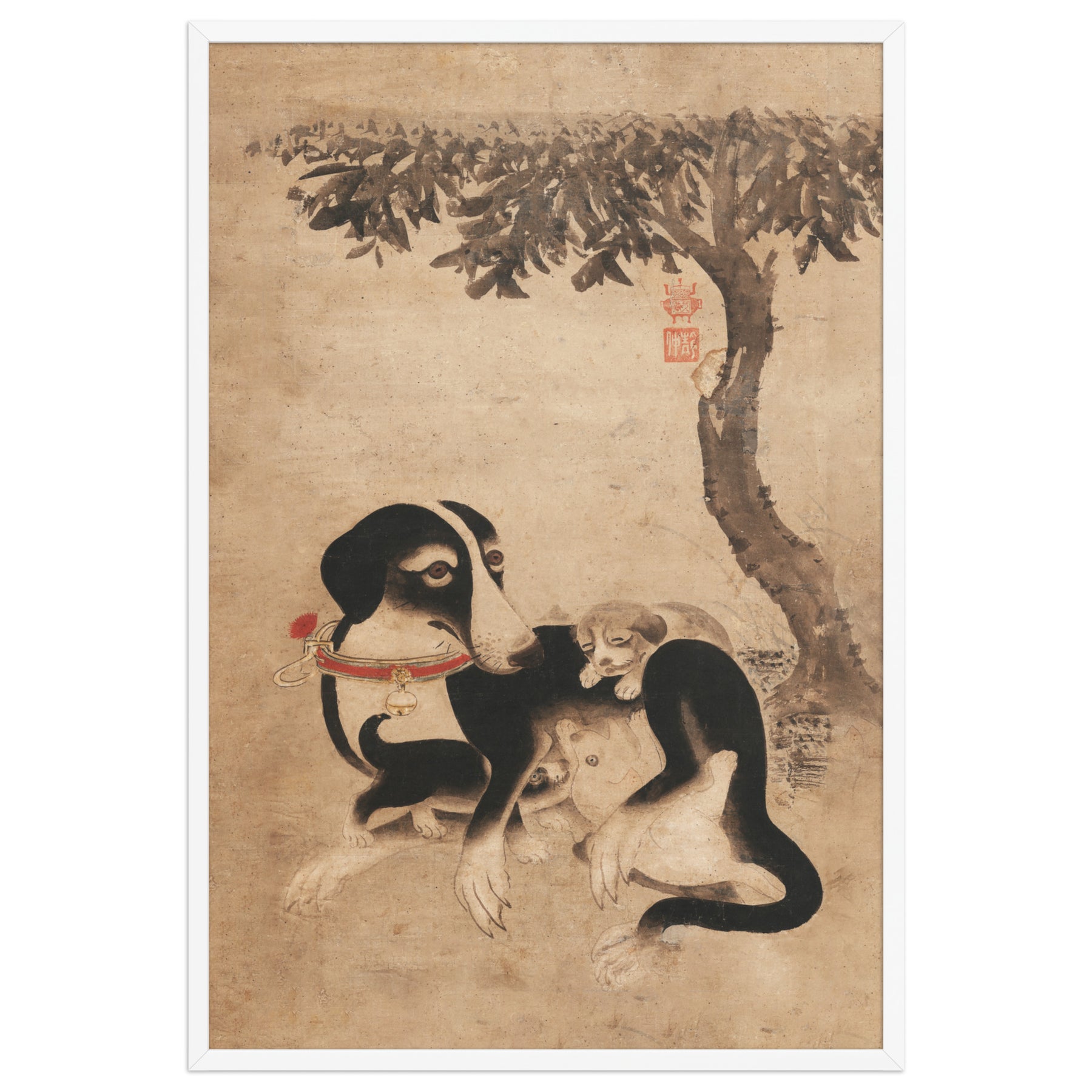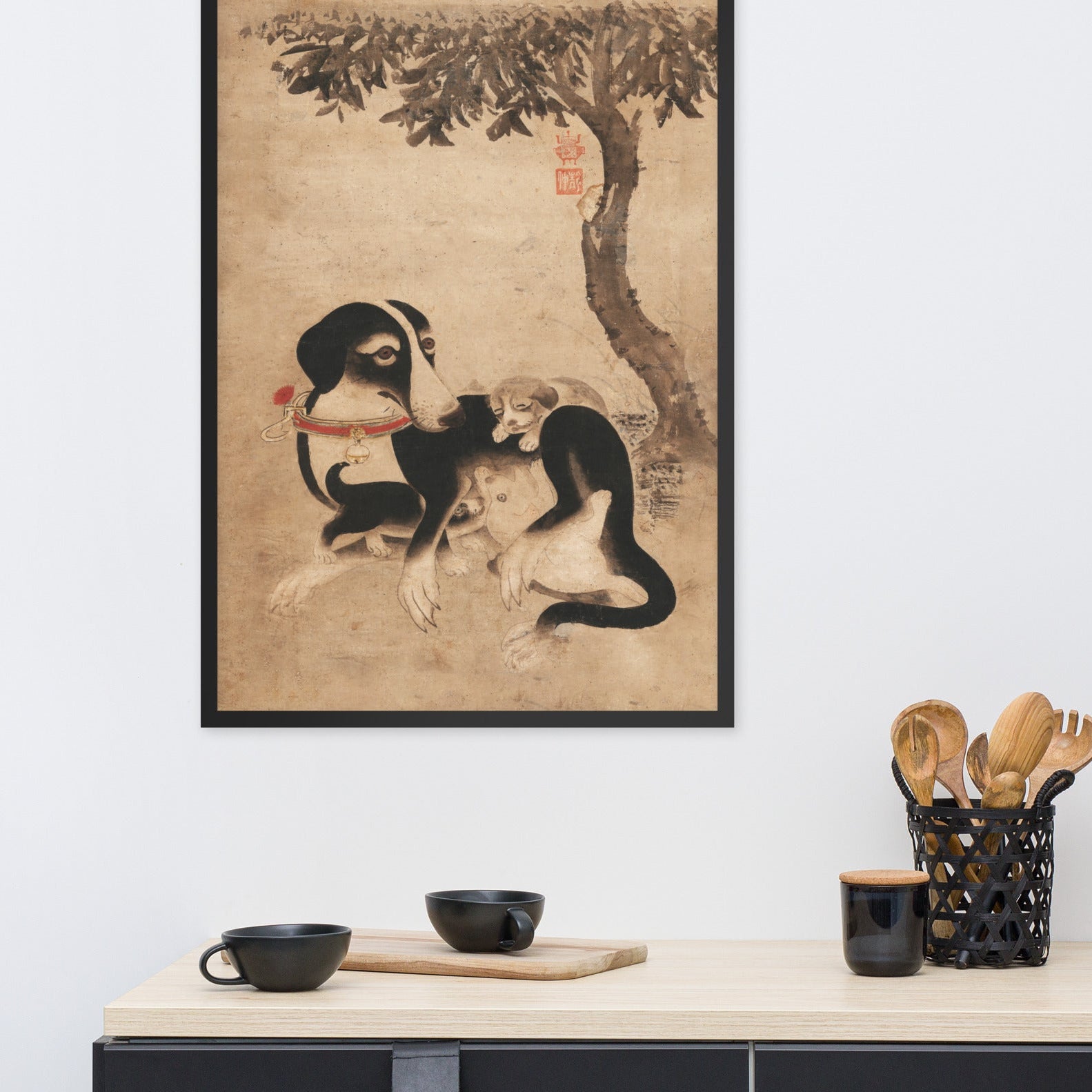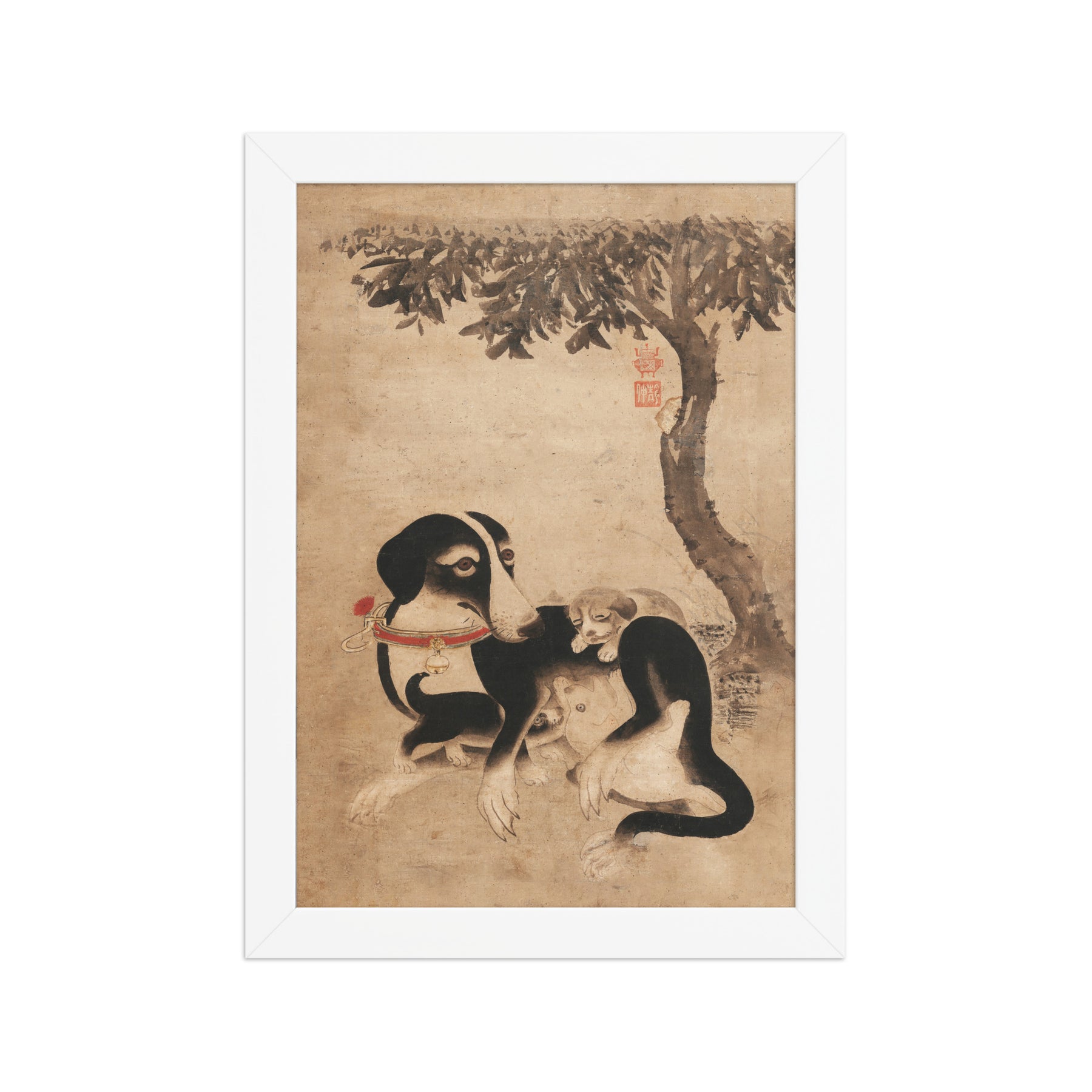 Mit diesem gerahmten Poster- Hundemutter mit Welpen Mother Dog with Puppies setzt du in jedem Raum ein markantes Zeichen. Gedruckt auf hochwertigem, dickem, mattem Papier.