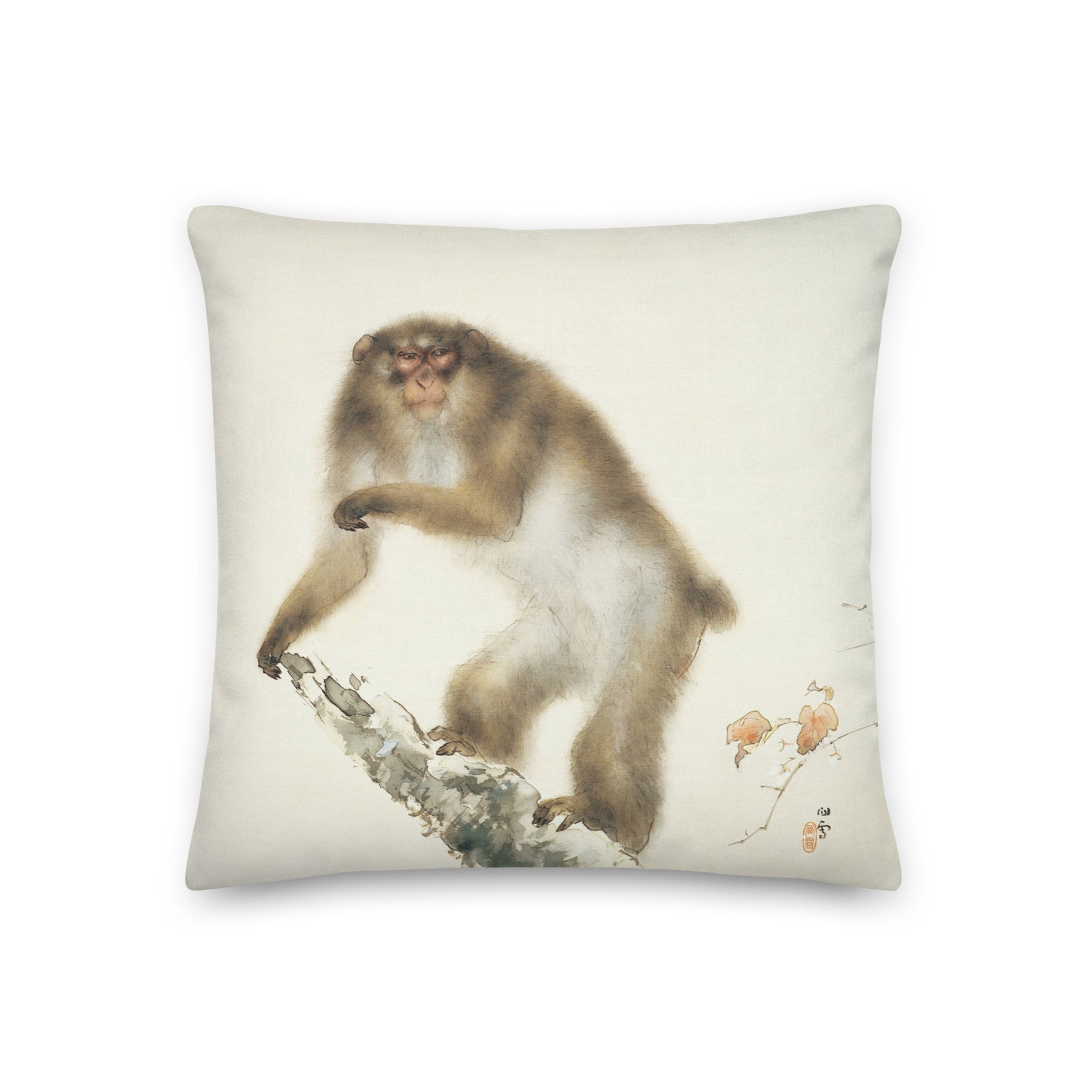 Premium-kussen - Hashimoto Kansetsu, Oude Aap met Kers in de Herfst