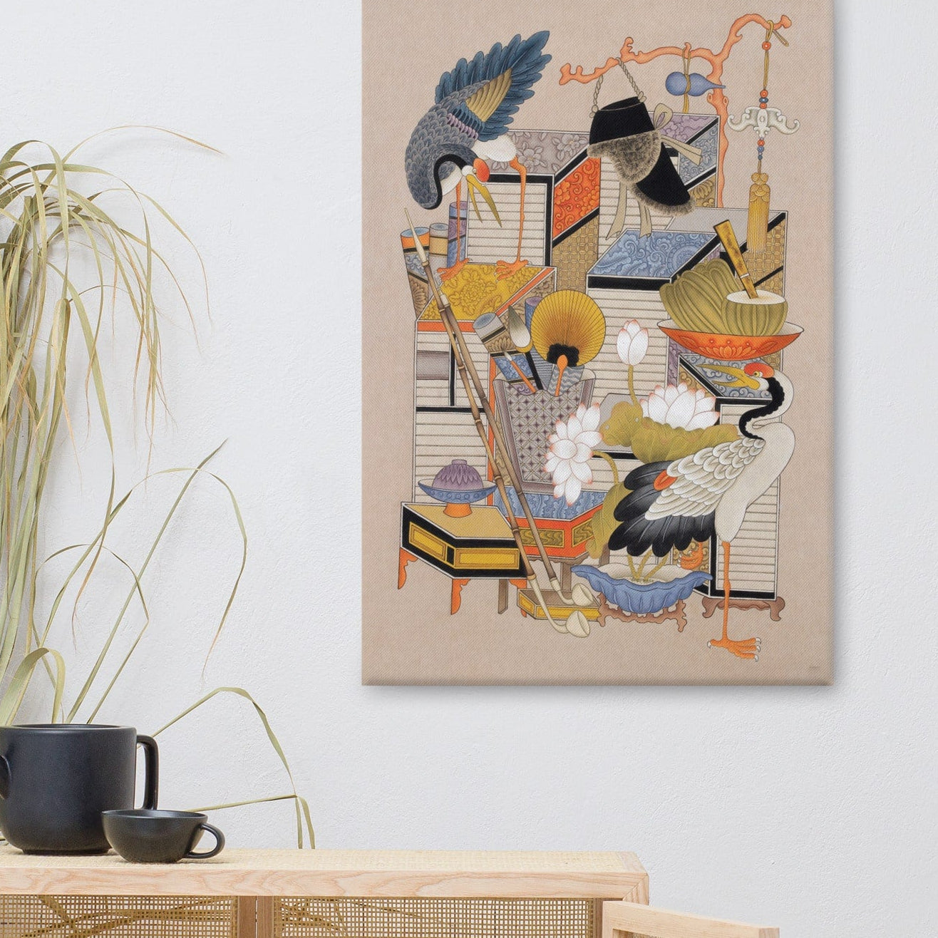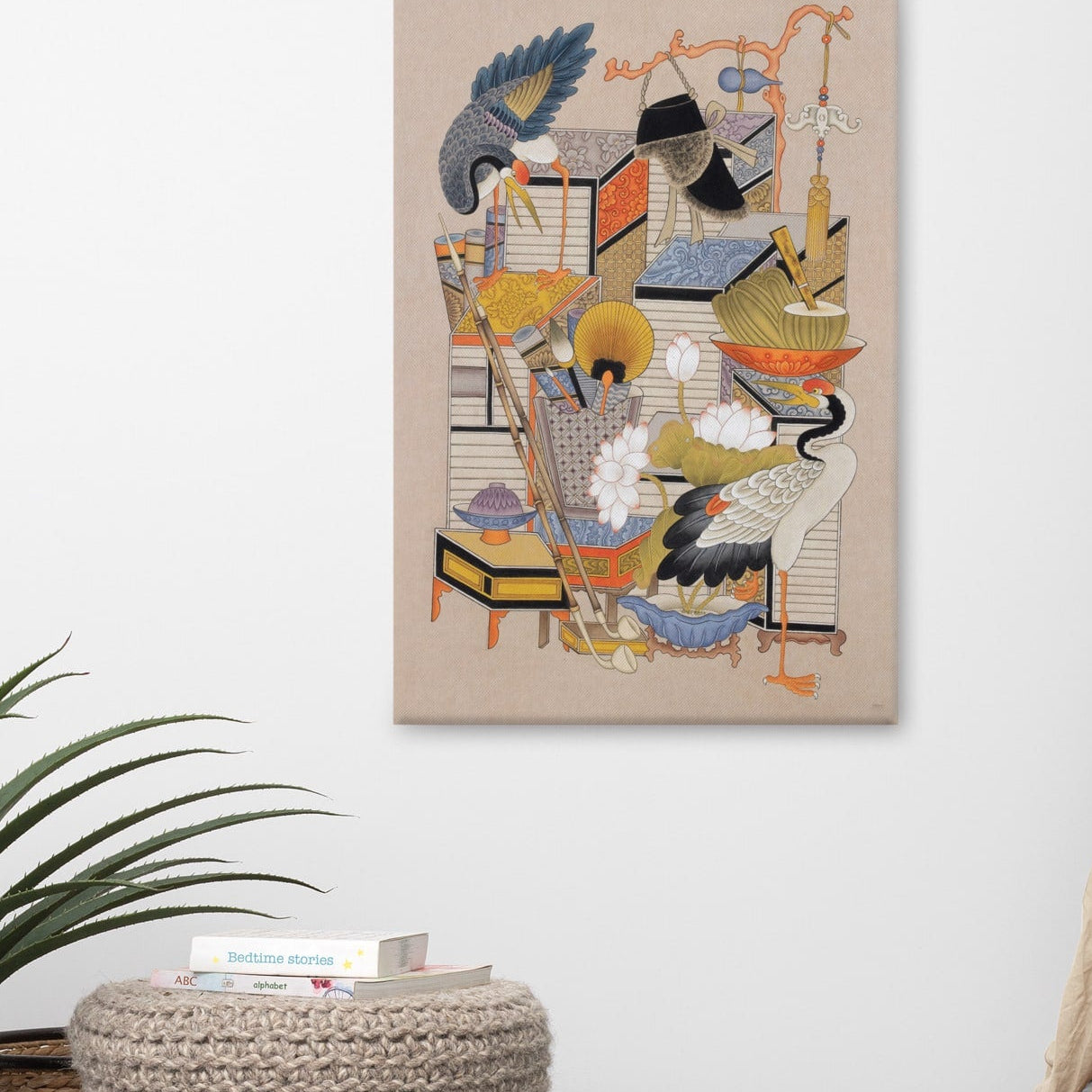 Op zoek naar wat flair voor je kantoor of huis? Je zoektocht is voorbij! Deze canvasprint - Verlangen naar kennis met kraanvogel van Seungmin Yoon met levendige en kleurvaste kleuren valt zeker op.