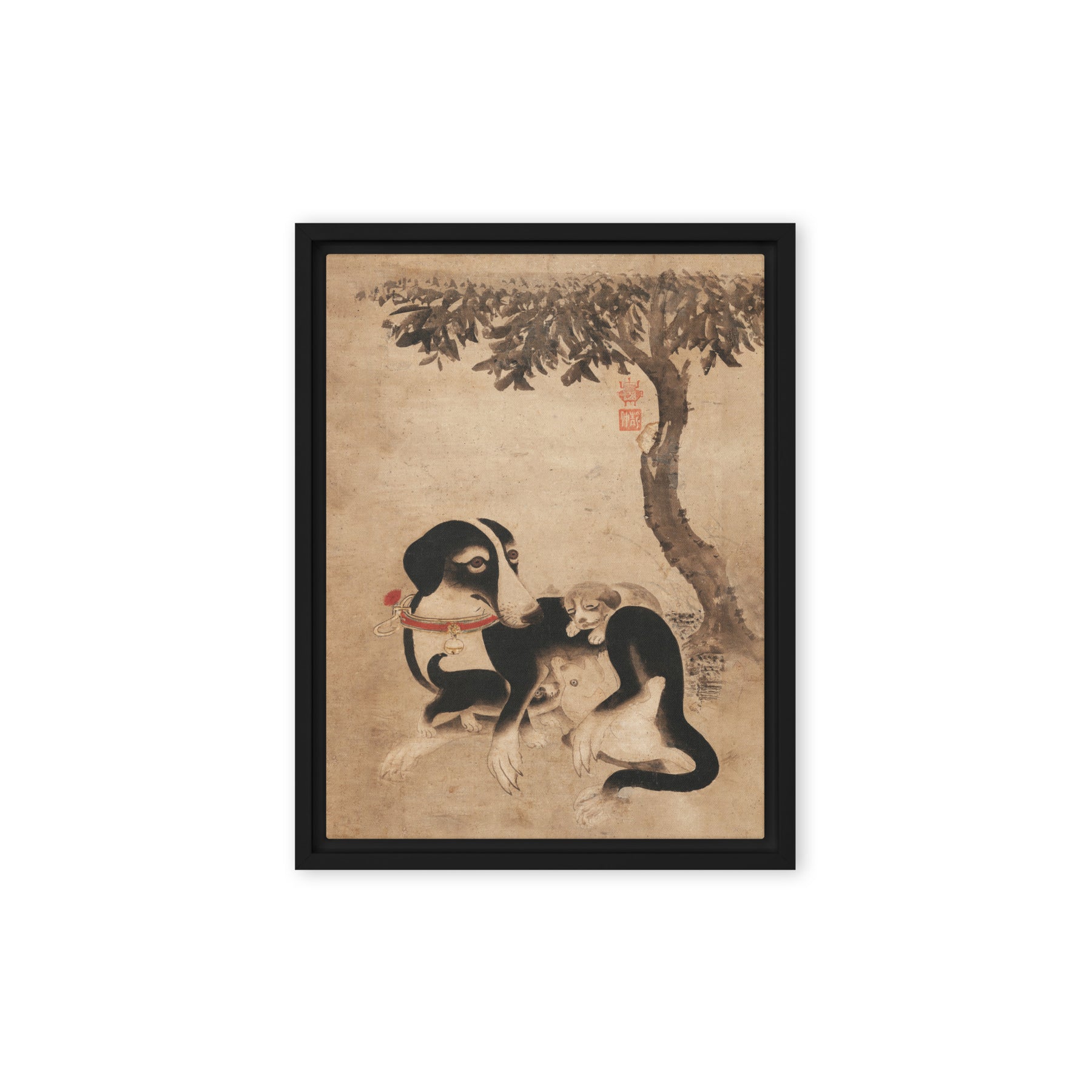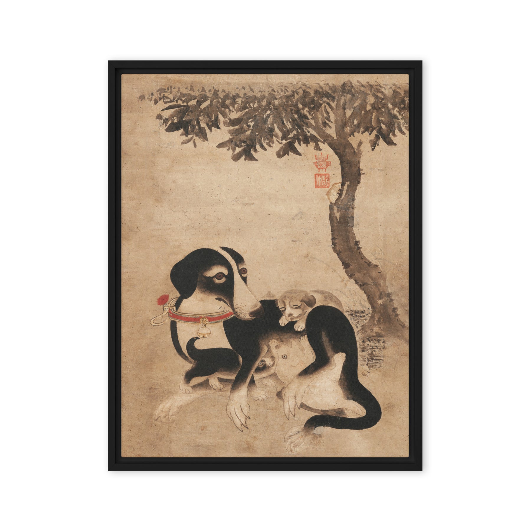 Hundemutter-mit-Welpen-framed-canvas-_in_-black-18x24-product
