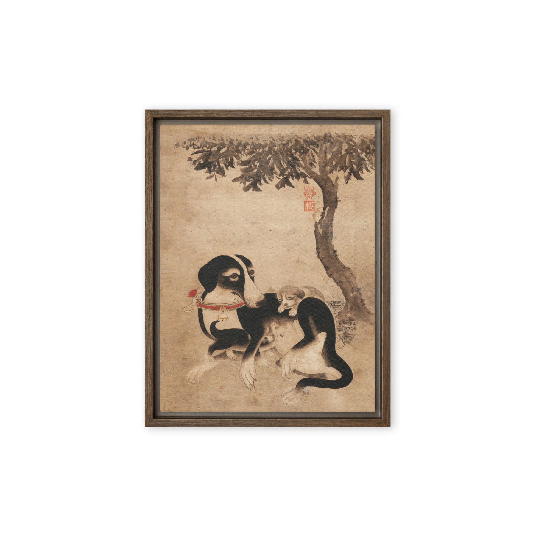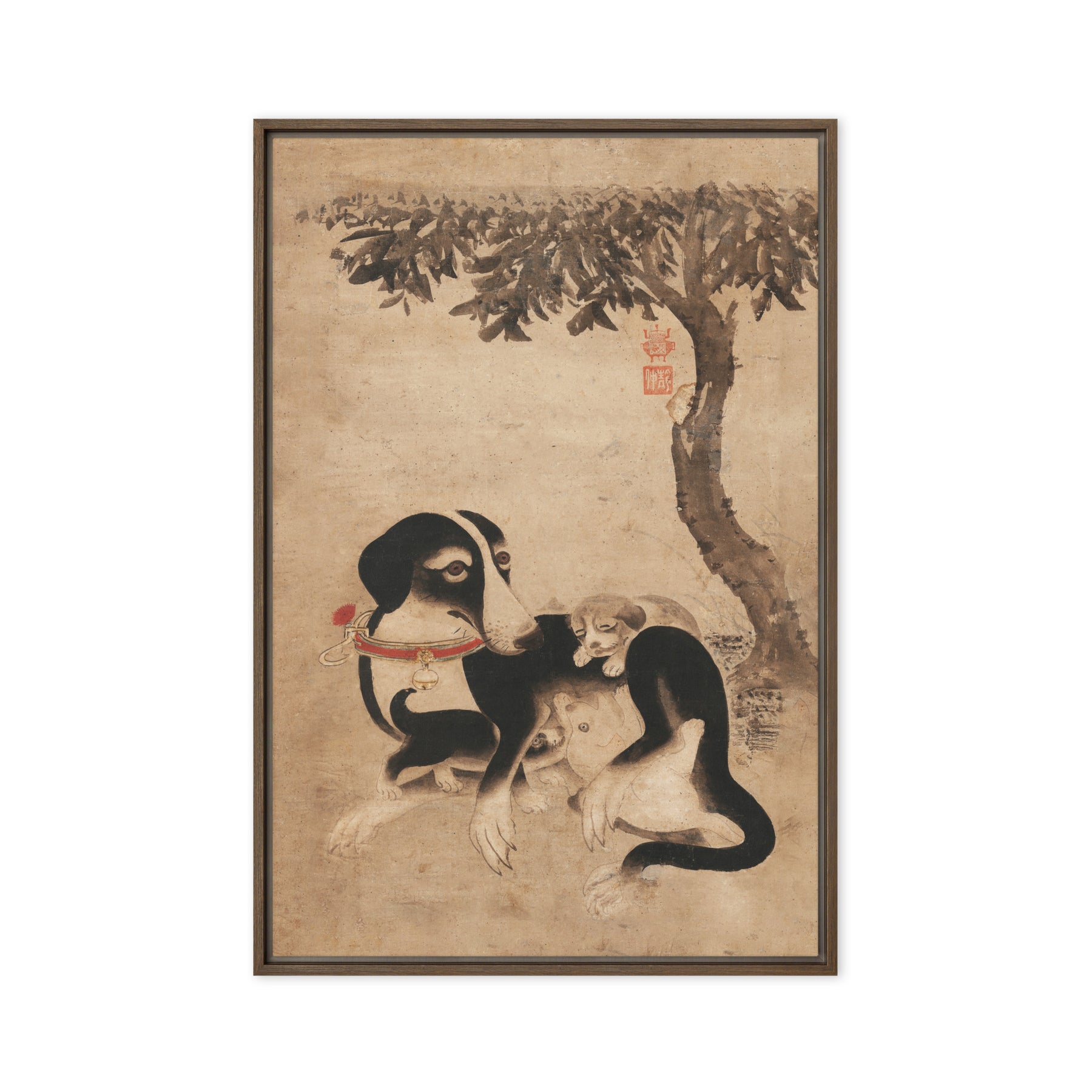 „Hundemutter mit Welpen“ ist ein bekanntes Tierbild des koreanischen Malers Yi Am (이암, 1499–?) aus der Joseon-Dynastie. Yi Am war ein Nachfahre der königlichen Familie und wurde besonders für seine realistischen Tierdarstellungen geschätzt. Historischen Aufzeichnungen zufolge wurde er sogar als möglicher Maler für das königliche Porträt von König Jungjong empfohlen – ein Zeichen für sein hohes Ansehen.