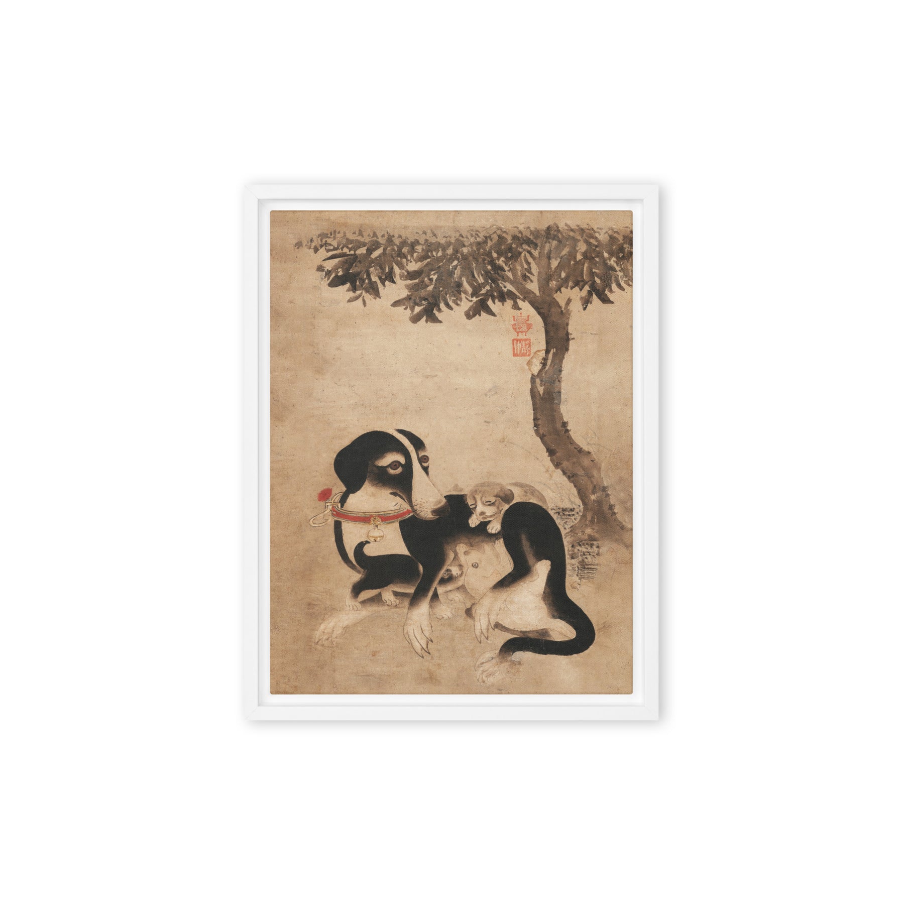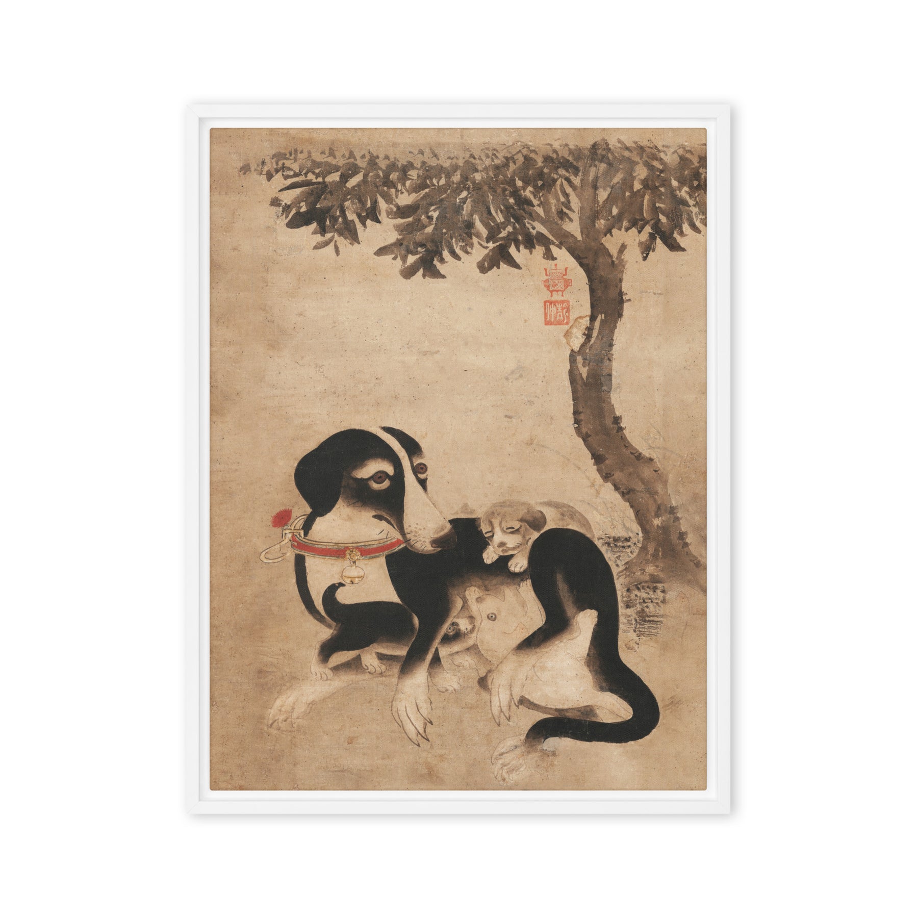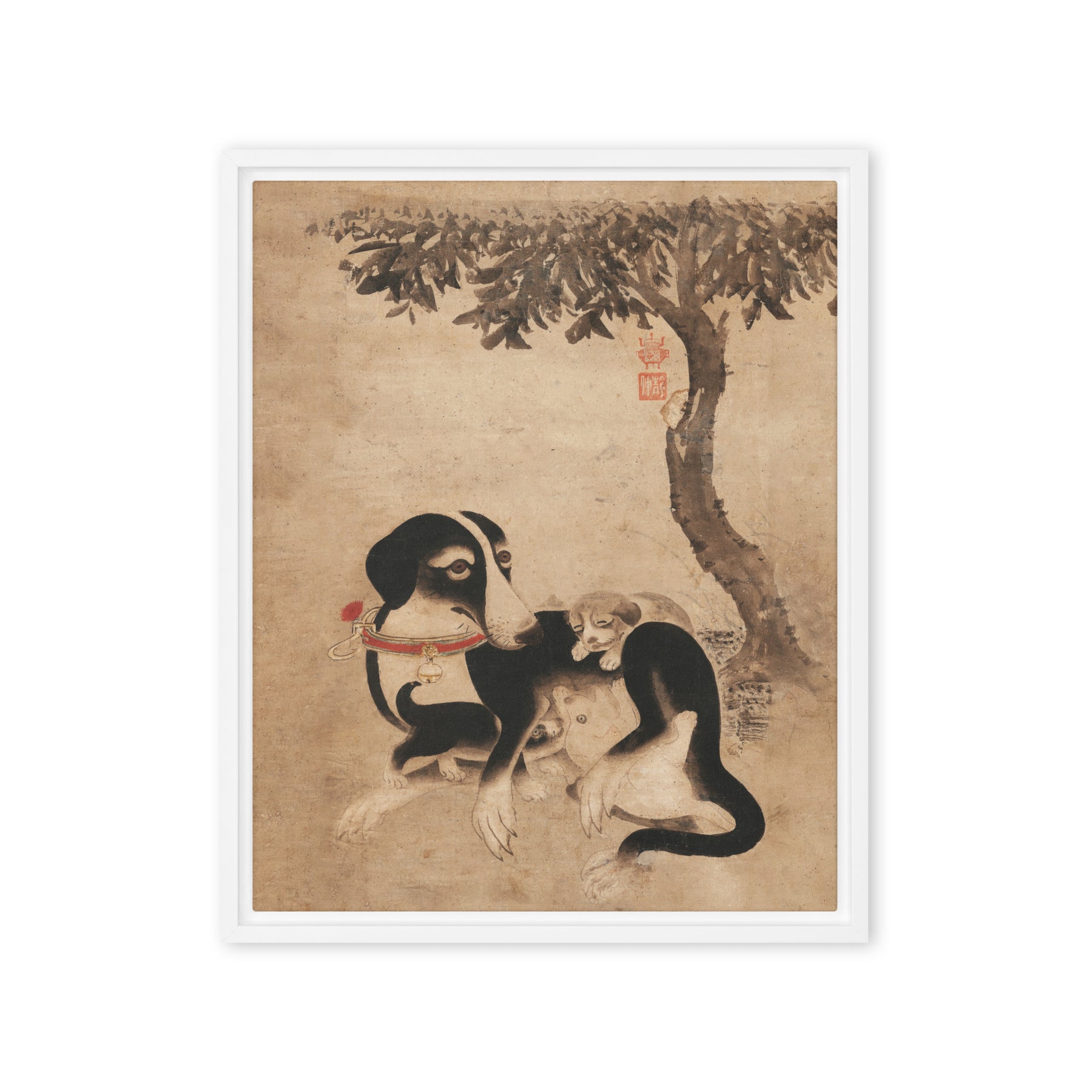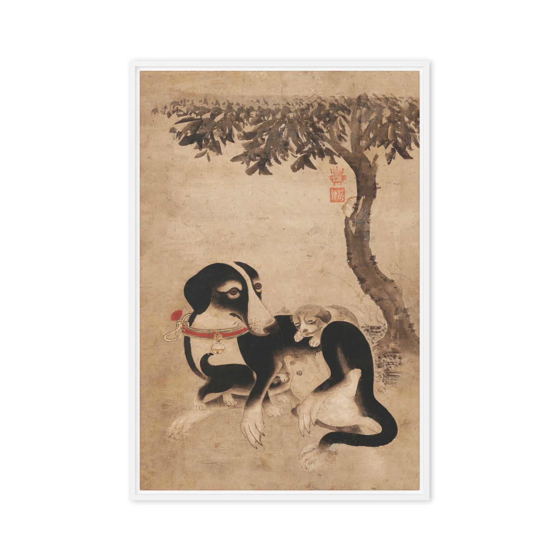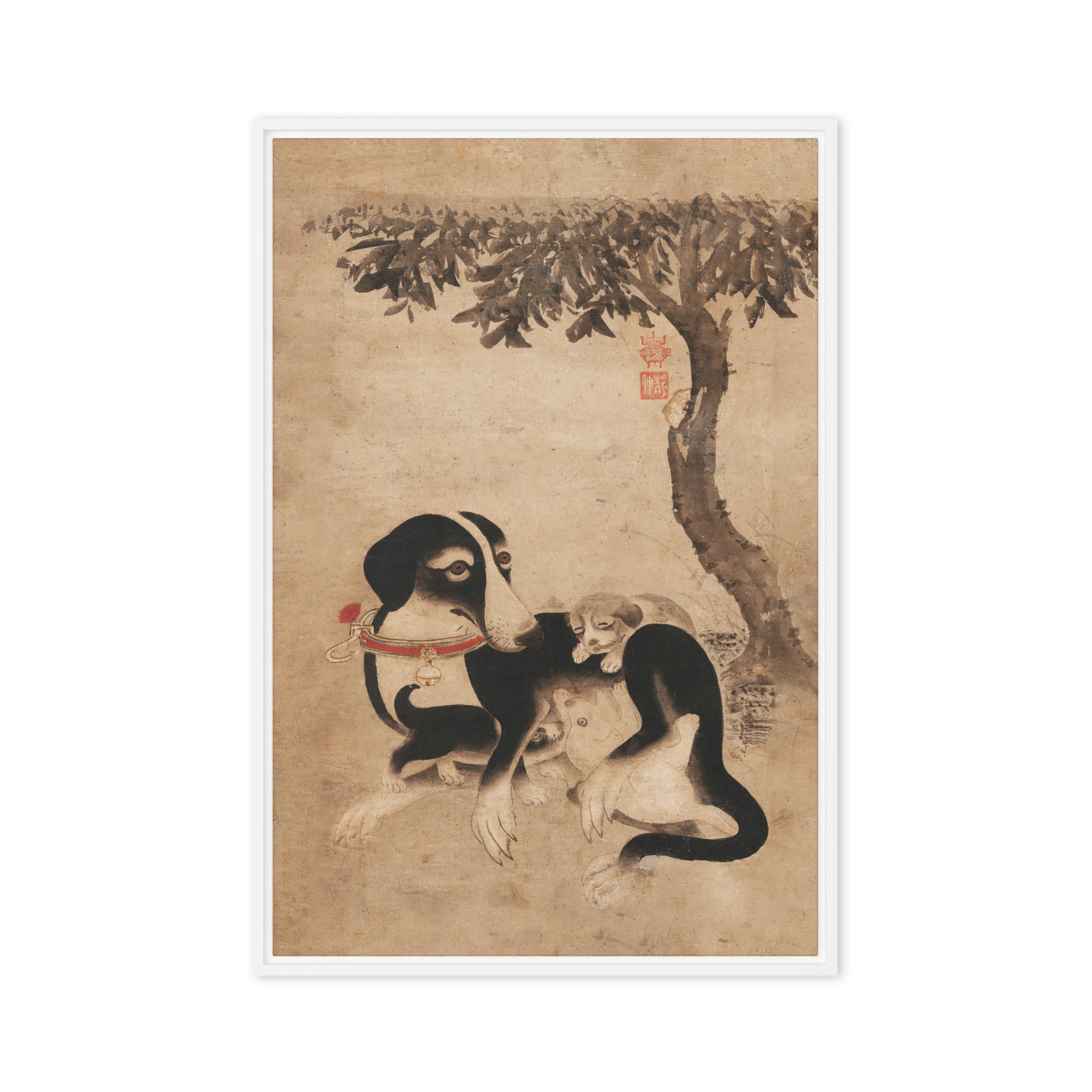 Hundemutter-mit-Welpen-framed-canvas-_in_-white-24x36